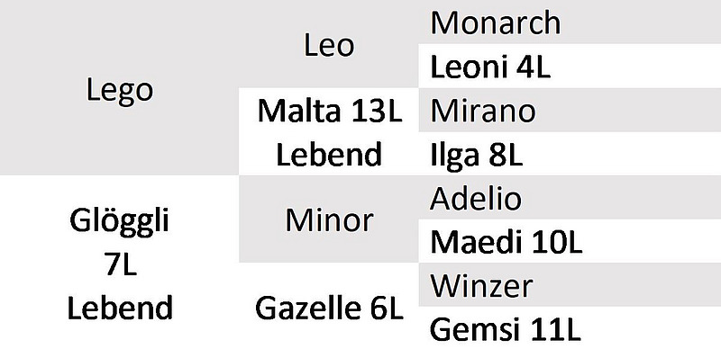 GVE Jungvieh: 15,3 (12,9 im Aufzuchtvertrag und im Sommer auf der Alp)