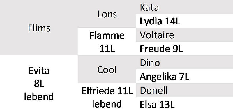 Evita hat in ihren ersten acht Laktationen durchschnittlich folgende Leistungen erbracht: