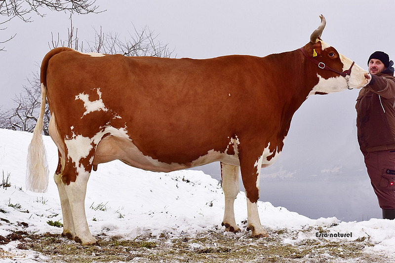 Fütterung Winter: Heu, Emd, wenig Kraftfutter (200 - 250 Kilogramm pro Kuh und Jahr, in der Startphase)